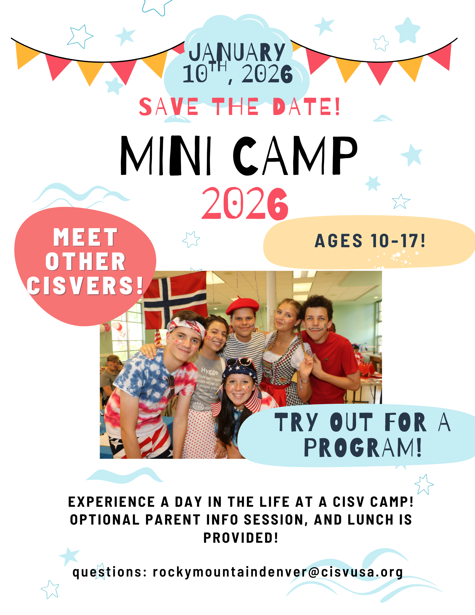 Experience a day in the life at a CISV Camp! There will be an optional parent info session, and lunch will be provided. This is a great opportunity to find out more about CISV, meet other people involved in the organization, and learn how you can get more involved! Please email rockymountaindenver@cisvusa.org with any questions. We hope to see you there! Read More